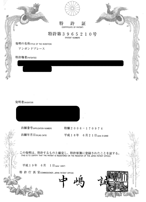 | 特許証 | ![]() |